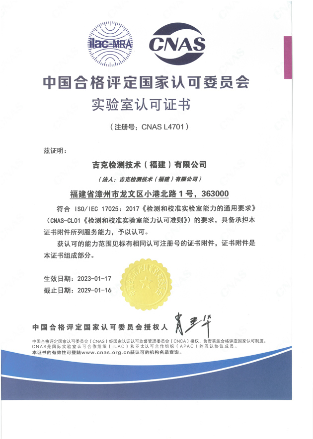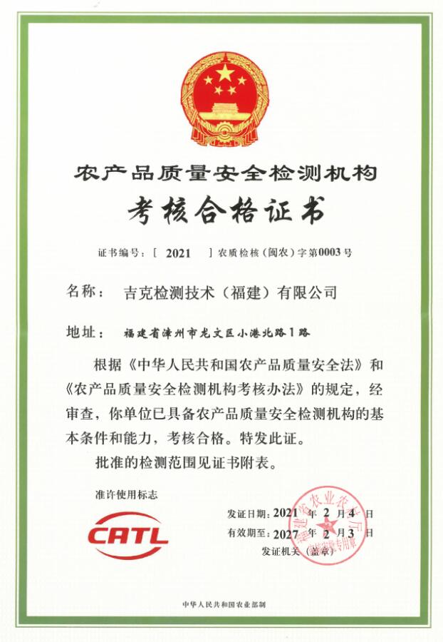 吉克檢測技術(福建)有限公司,位于福建省漳州市龍文區(qū)小港北路1號,于2019年8月注冊成立,是一家獨立的第三方檢測公司。公司已經通過檢驗檢測機構計量認證(CMA)、農產品質量安全檢測機構資質認證(CATL),獲得中國合格評定國家認可委員會(CNAS)認可。公司本著“嚴謹、規(guī)范、高效、協作”的原則和對客戶及社會高度負責的精神,充分利用本公司優(yōu)質的檢測環(huán)境、先進的檢測設備和專業(yè)的技術人員,第一時間為客戶提供科學、公正、準確的檢驗檢測報告。 公司實驗室面積1100多平方米,儀器設備兩百多臺(套),固定資產一千多萬元,在職員工31人,技術人員中的中高級職稱及同等能力人數占60%以上。我們的服...